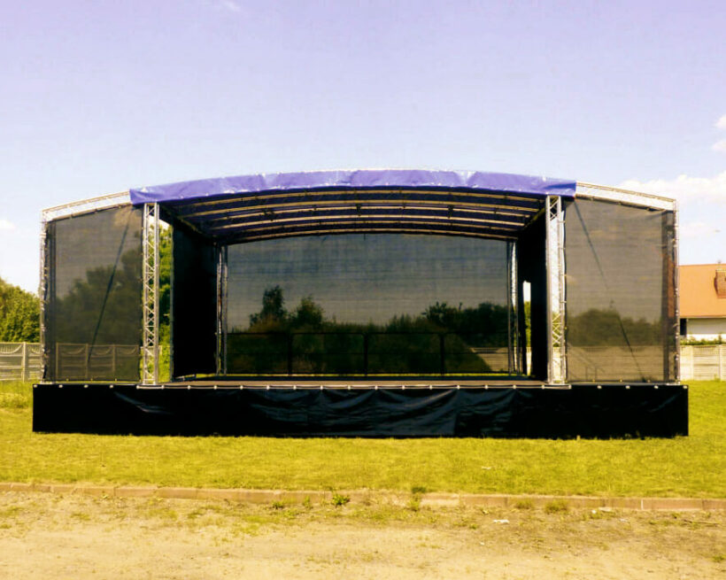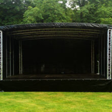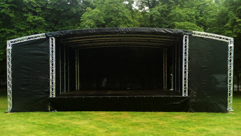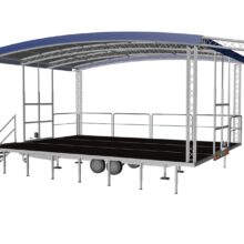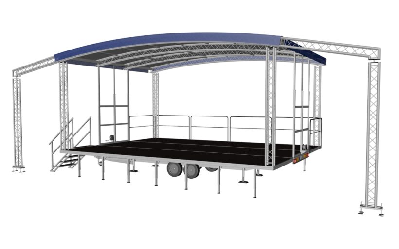 Die mobile Rundbogenbühne besticht durch ein ansprechendes Design und dem dennoch schnellen Aufbau.
